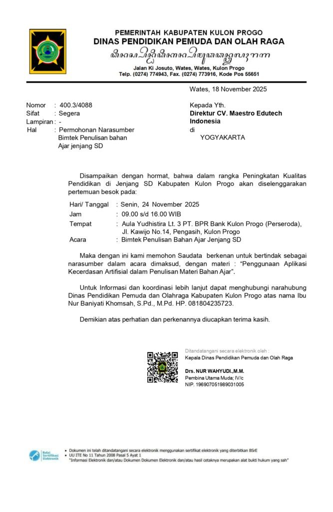 CV Maestro Edutech Indonesia terus berkomitmen menghadirkan solusi teknologi pendidikan yang kreatif, adaptif, dan berdampak nyata untuk kemajuan dunia pendidikan Indonesia.